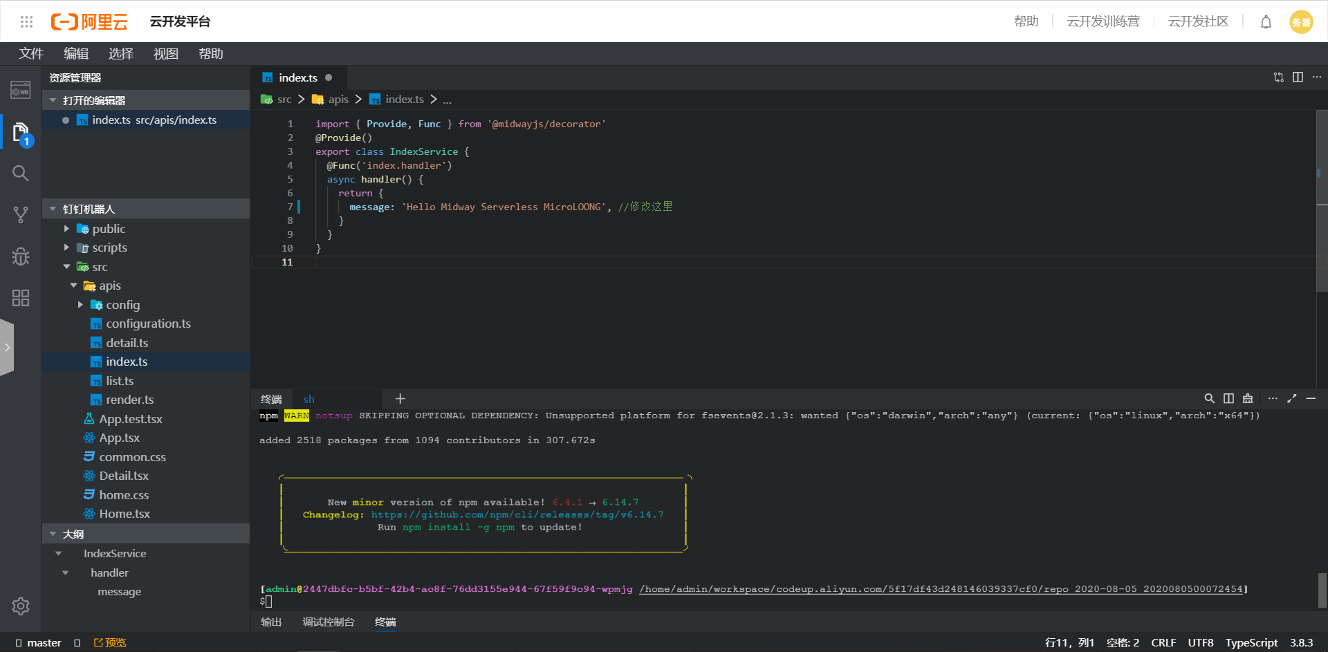 同时我们可以看到项目目录中有很多 tsx 文件,说明这是一个 Midway Serverless 和 React 一体化的项目