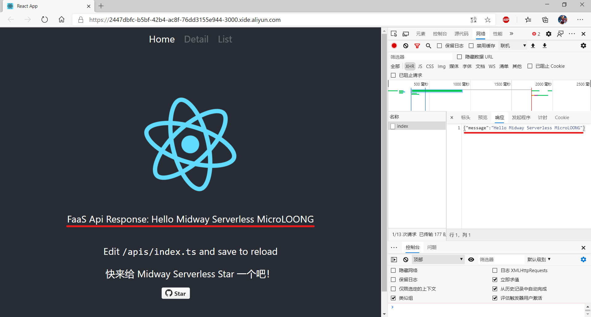 启动时会自动发一个请求到函数端拿数据,渲染到页面。点开上图所示的链接即可访问到该页面,在本地运行的话需要访问 locathost:3000。