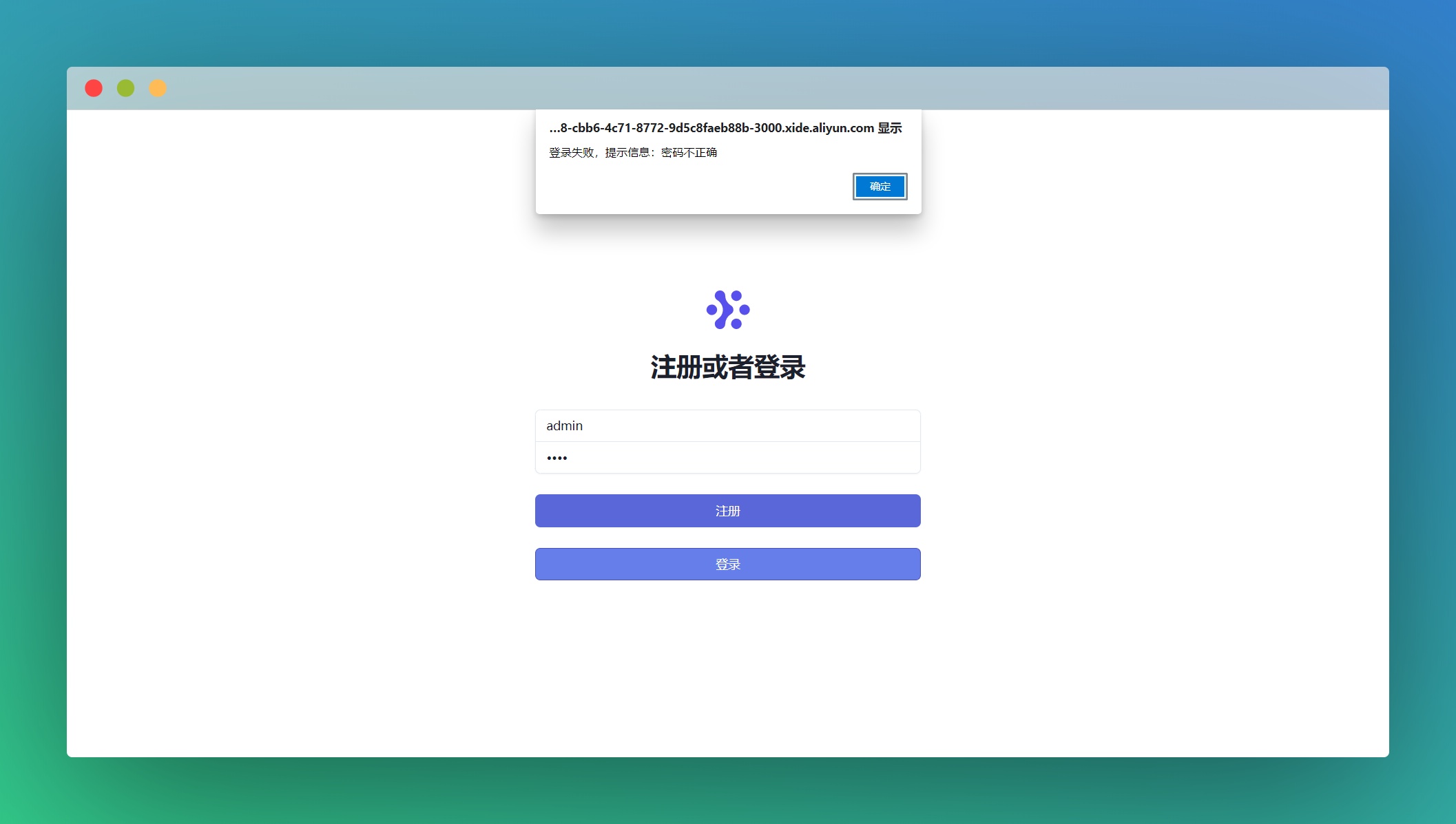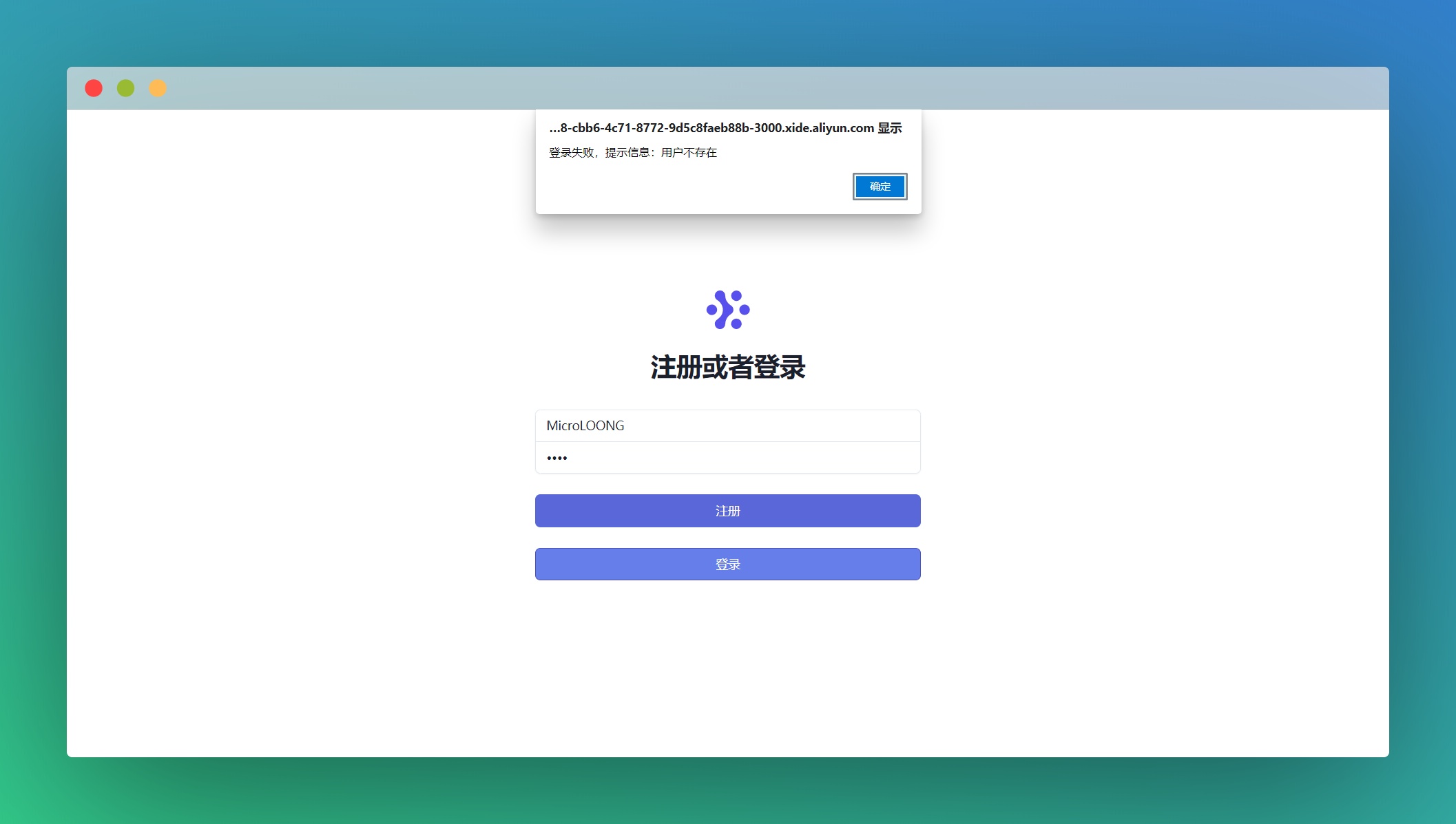 这个简单的注册、登录只能作学习、演示使用,重点是如何在 Midway Serverless 中使用阿里云 BaaS 服务进行数据的操作和调用。