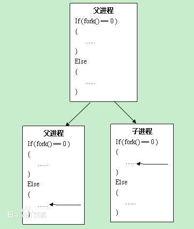 fork函数后会产生一个新进程,此时程序中有父子两个相互独立的进程,程序执行一次,两个进程各执行一次,产生了两个结果。Q: if - else 起什么作用?